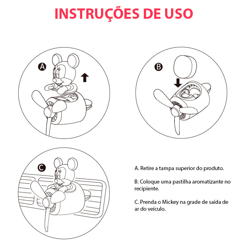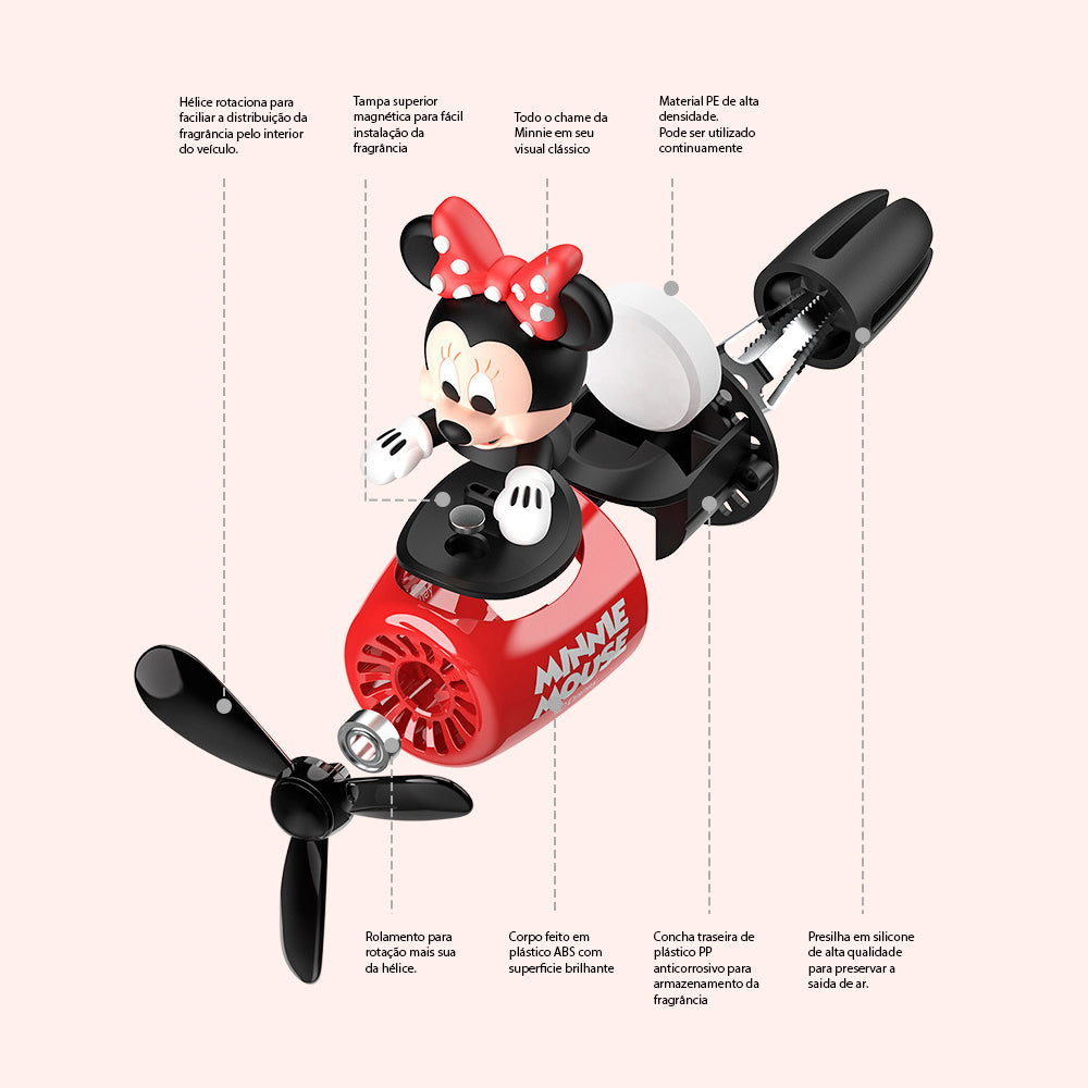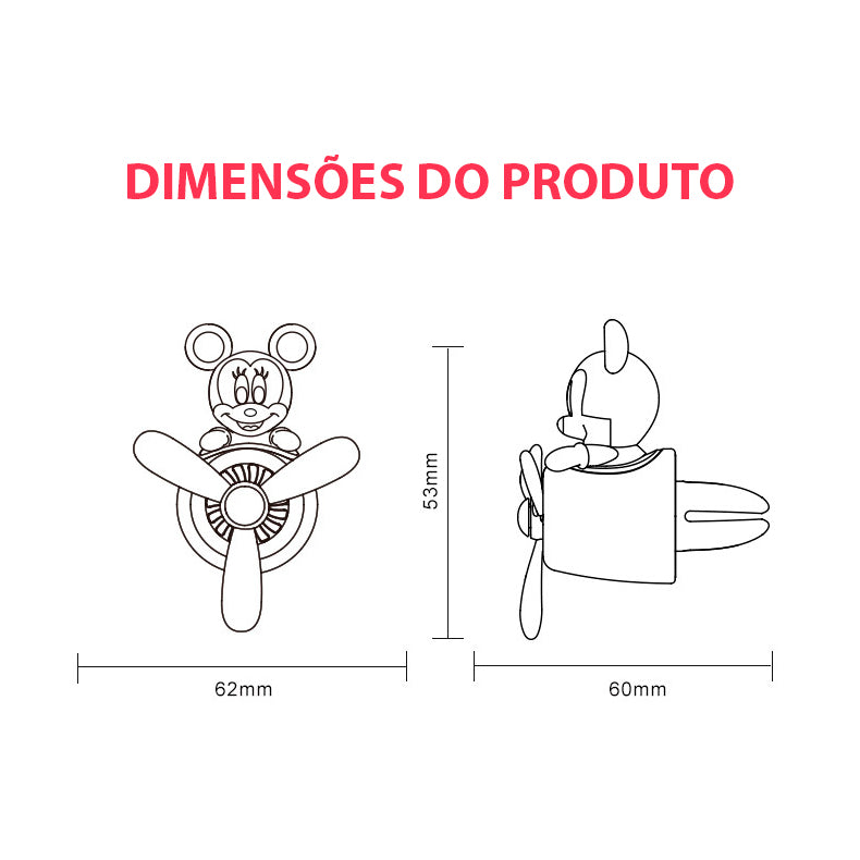 Com o aromatizador Mickey e Minnie Disney você deixará o seu carro sempre com um cheirinho gostoso. Ligue a ventilação interna do seu veículo (ar quente ou frio) e deixe nossos amados personagens ajudá-lo a espalhar o delicioso aroma por todo o veículo. Nosso kit é acompanhado por duas essências (Colônia e Oceano), mas você pode utilizar qualquer óleo de essência para deixar o aroma do seu veículo ainda mais personalizado. Agora a aromaterapia Disney chegou ao seu carro.