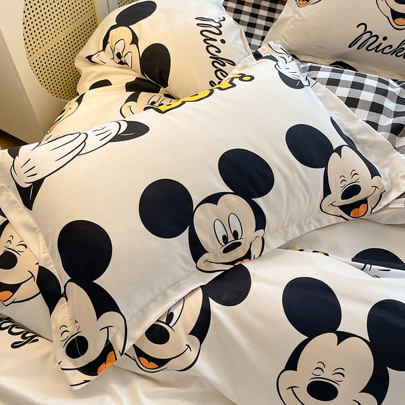Acordar com o Mickey Mouse em um conjunto de capa para edredom, lençol e fronha para travesseiro super bonito e confortável é um ótimo jeito de começar bem o dia! Imagine um conjunto com acabamento primoroso e qualidade que pode ser sentida no toque. Você que é fã do casal mais famoso do mundo, vai adorar essa nova linha aconchegante para camas casal e solteiro! Chegou a hora de deixar seu quarto repleto da mais pura magia Disney! Comece agora mesmo! Crie e renove!