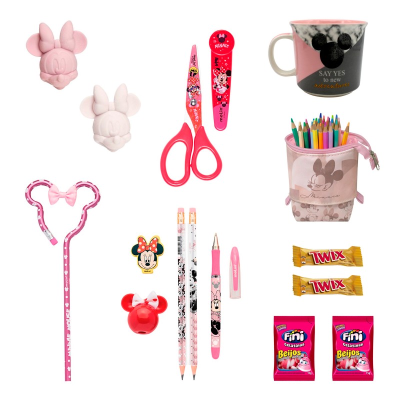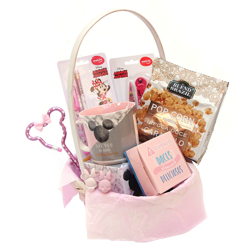 Para os amantes da Papelaria Disney, preparamos uma cesta de presentes recheada de itens da nossa amada Minnie Mouse! Que tal presentear a pessoa que você ama com uma cesta super encantadora cuidadosamente elaborada para você surpreender! ideal para ocasiões como Dia dos Namorados, Dia das Mães, Dia dos Pais, Dia do Amigo(a), Aniversário, Maternidade e muitas outras ocasiões.