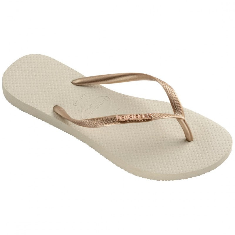 As Havaianas Slim Logo Metallic são os chinelos para quem gosta daquele algo a mais. O logo metálico proporciona um brilho e acabamento único. O modelo Slim é um dos mais queridos de Havaianas, e não à toa: as tiras mais finas e a sola mais delicada levaram estas sandálias a outro patamar.