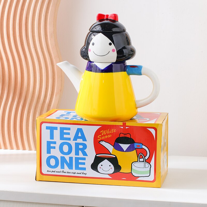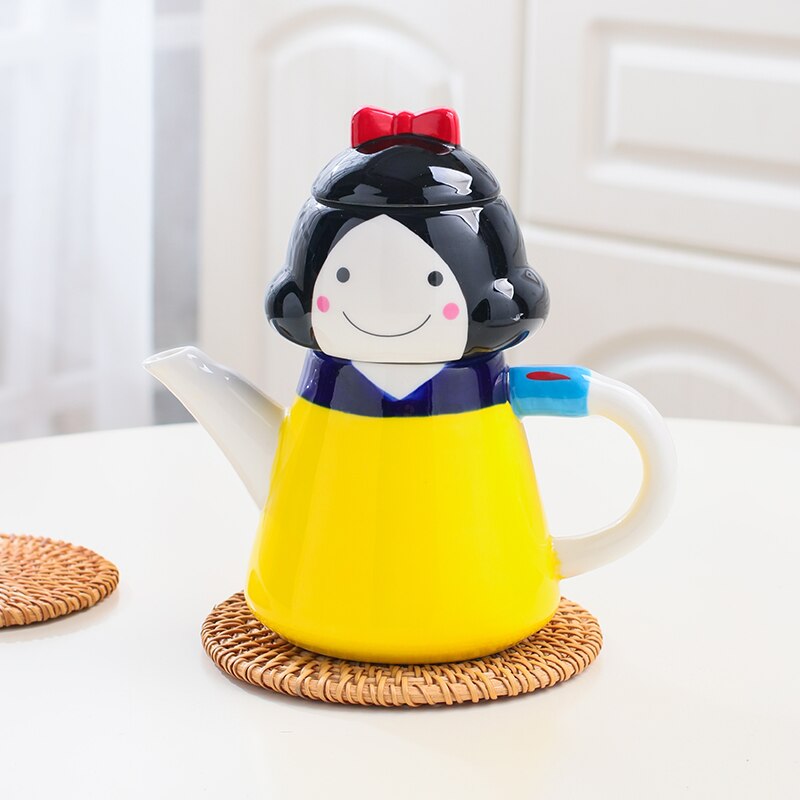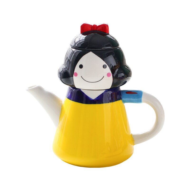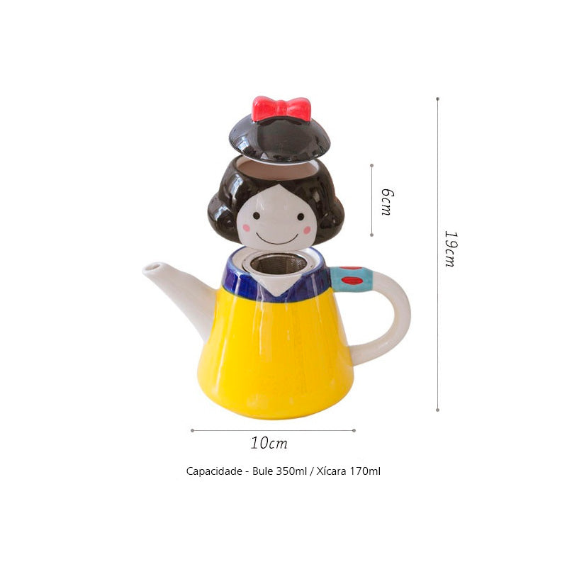 Esse conjunto de chá da Branca de Neve é uma fofura! Na parte superior, uma maravilhosa xícara no formato da cabeça da Branca de Neve. Já na parte inferior, um charmoso bule! O conjunto é feito em cerâmica com pintura esmaltada para proporcionar um brilho digno de uma princesa! O bule possui capacidade para 350ml e a xícara 170ml. Muito adequado para apreciar um delicioso chá da tarde. Também acompanha um coador de chá feito em aço inoxidável.