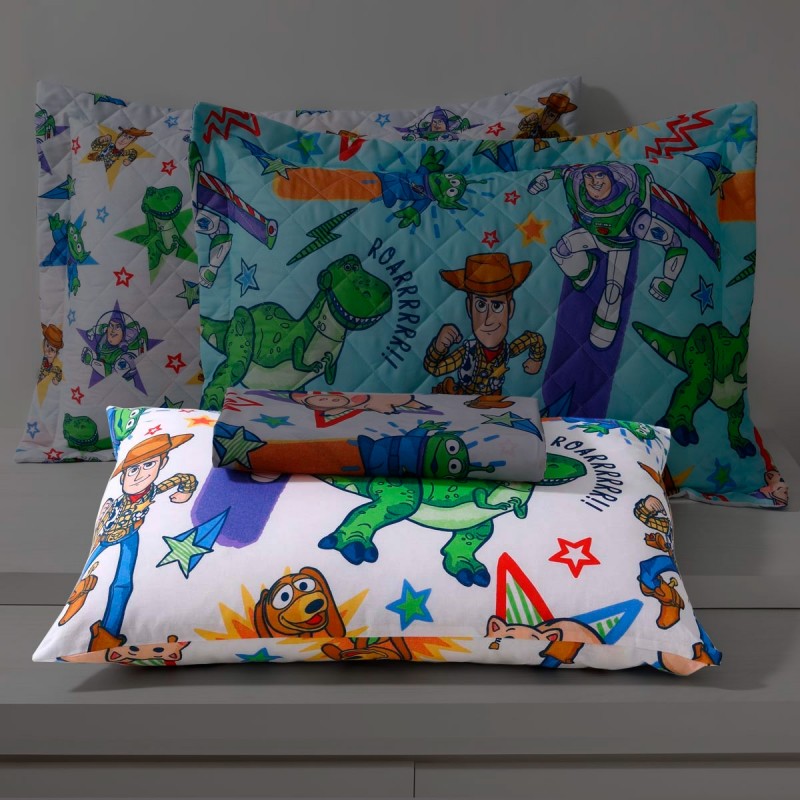Acordar com os personagens de Woody e Buzz de Toy Story em uma fronha para travesseiro super bonita e confortável é um ótimo jeito de começar bem o dia! Acabamento primoroso e qualidade que pode ser sentida no toque (100% algodão), além de receber tratamento anti pilling, ou seja, não faz aquelas bolinhas desagradáveis. Qualidade incomparável. Você que é fã dos personagens Toy Story Disney, vai adorar essa nova linha de roupas de cama! Chegou a hora de deixar seu quarto repleto da mais pura magia Disney! Comece agora mesmo! Crie e renove!