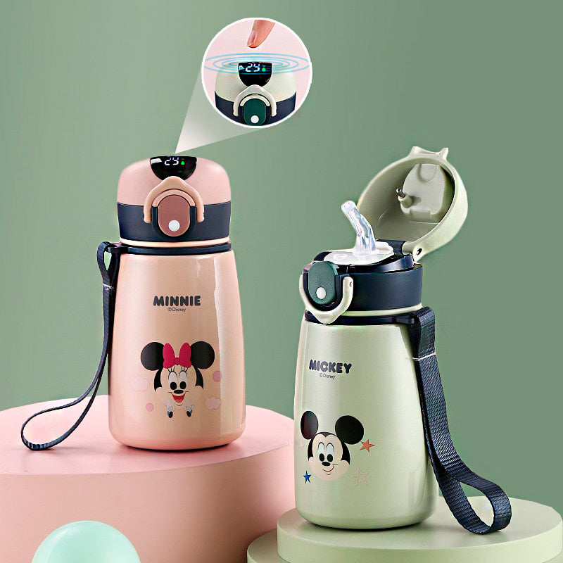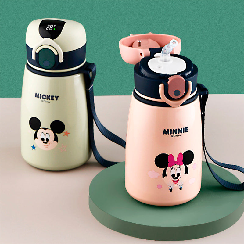 E se você pudesse saber qual é a temperatura exata da sua bebida antes de consumi-la? Com a nova garrafa térmica Mickey e Minnie com termômetro isso é possível! Basta um simples toque no botão localizado na tampa da garrafa para o sistema apresentar instantaneamente a temperatura do líquido no interior da garrafa, evitando queimar a boca ou os lábios. Legal, não é? Também pode manter sua bebida geladinha ;-)