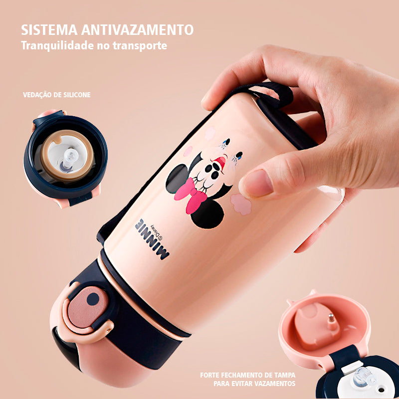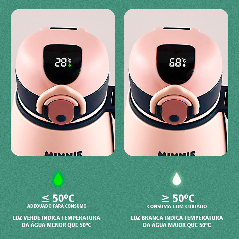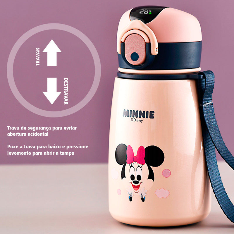 Garrafa Térmica Mickey Minnie 380ML Aço Inox c/ Termômetro Disney