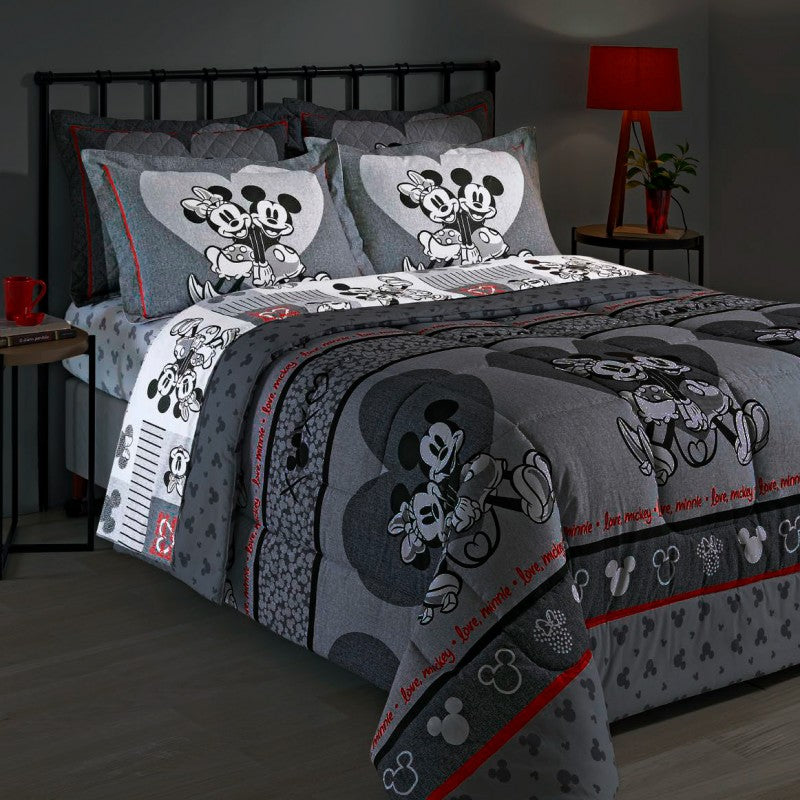 Jogo de Cama Casal King Size Mickey e Minnie Namorados - 4 Peças
