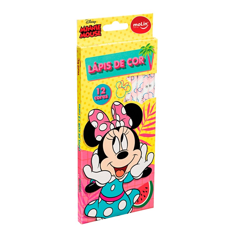 Conteúdo a embalagem: 01 Caixa de Lápis de Cor Minnie Mouse 12 cores Disney (Estampa da caixa sortida)