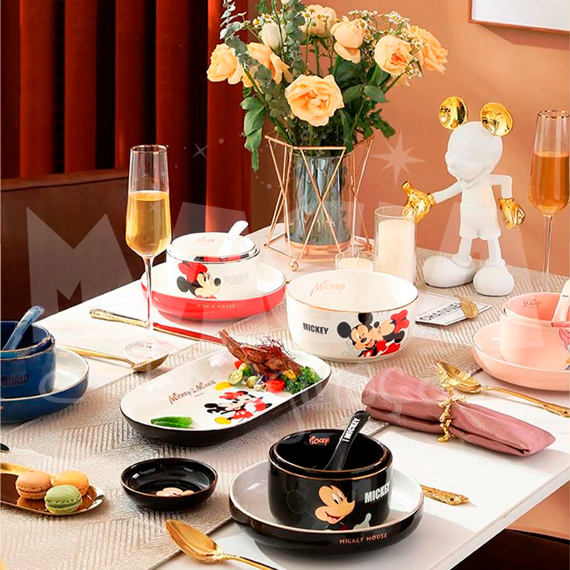 A linha de utensílios de mesa no estilo europeu foi delicamente produzida em porcelana pintada a mão, decorada com imagens dos personagens mais icônicos da Disney.